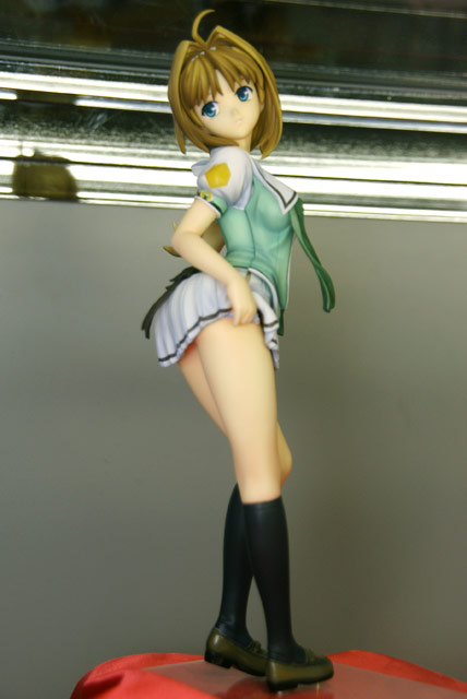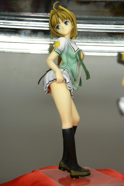 5月3日に開催された、ドリームパーティ東京2008春のアリスソフトブースでは、ボークスのガレキ「超昂閃忍ハルカ 鷹守ハルカ(制服版)」の作例サンプルが展示されていました。これは、アリスソフトのエロゲ「超昂閃忍ハルカ」のキャラ「鷹守ハルカ」を制服姿で立体化したガレキで、作例サンプルはパンツ脱ぎ掛けポーズの半脱ぎタイプでの展示でしたw 角度によっては乳首も・・・w