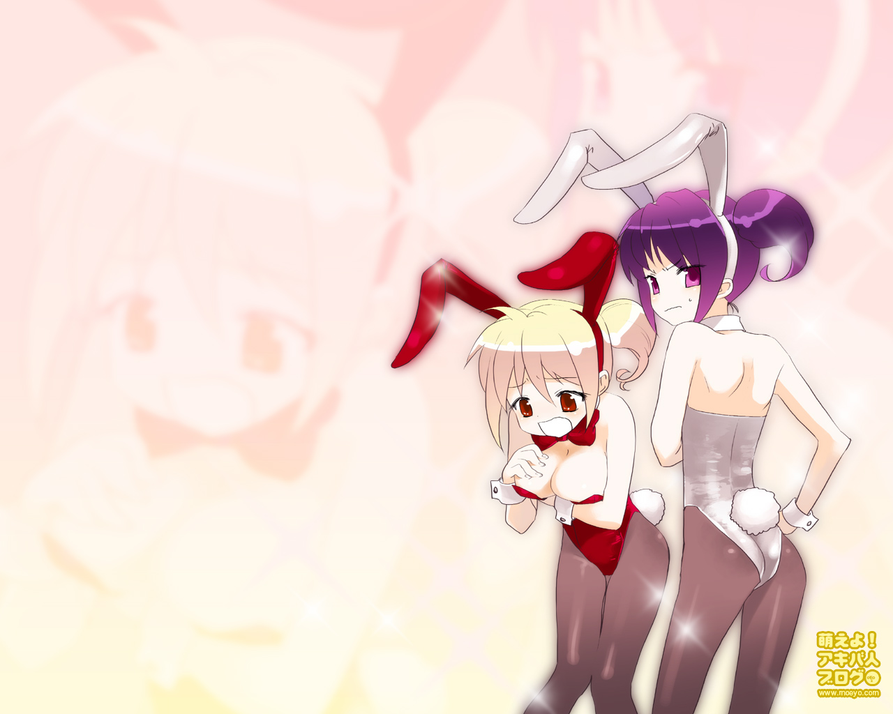 と、言うわけで!「フィギュアのフィーたん 4コママンガ」もついに連載100回目を迎えることが出来ました!ありがとうございます!そこでポストカードの他にも、希望者全員お持ち帰りできるよう、紅白バニー姿のフィーたんとリペたんを「フィーたん4コマ100回記念」として、bbさんに壁紙を作ってもらいました!大きさ3サイズ+携帯等をご用意しましたので、是非お持ち帰りください!
