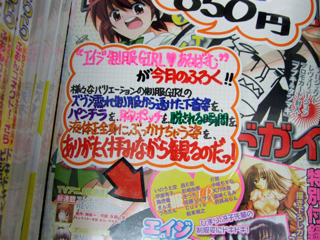 5月9日、雑誌「ドラゴンエイジ 2008年 06月号」(AA)が発売されました。今回、とらのPOPによると『様々なバリエーションの制服GIRLのズブ濡れ制服から透けた下着姿を、パンチラを、胸ポッチを、脱される瞬間を、液体を全身にぶっかけちゃう姿を、ありがたく拝みながら観るのだっ!』という「エイジ制服GIRL♥あるばむ」が付属。画像はその中の太ももに白濁液なイラスト。