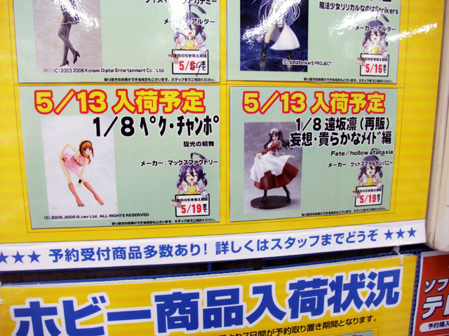 関連:旋光の輪舞 – 公式/旋光の輪舞 – Wikipedia/マックスファクトリー「旋光の輪舞 ペク・チャンポ」のサンプル展示/和風堂「天元突破グレンラガン ヨーコ」は5月31日 ソフマップAM館の入荷予定POP