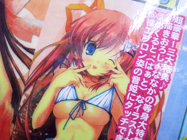 5月20日頃に発売予定で、「描きおろし!ななかの等身大特製シーツ」「特製メモパッド」「裸エプロン姿の音姫にタッチできる!特製マウスパッド」が付属する雑誌「電撃G’s Festival Vol.12」(AM)の告知POPがゲームシティにて掲示されています。まだ表紙などの画像がないみたいで、掲載されていた画像は「イメージ」みたいですが『これだけでも色々と妄想が・・・。』とのことw