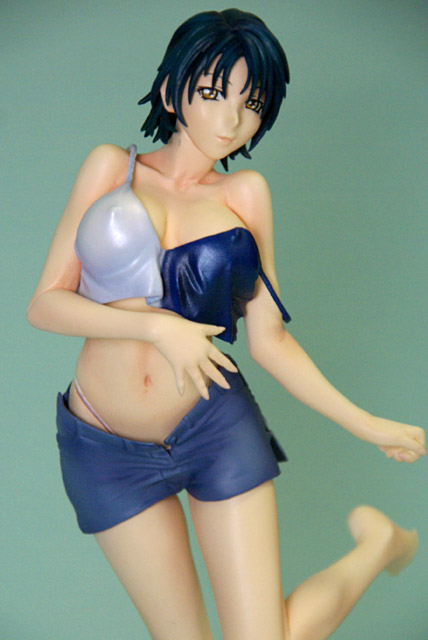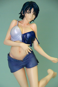 これは、第1弾「伊万里胡桃 」(AM)(参考レビュー)、第2弾「高城寛子」(宮沢模型展示会2008春での展示の様子)に続き、大人向けアニメ「バイブルブラックシリーズ」に登場するキャラ「水無瀬由紀子」を立体化したもので、みやびやの商品説明によると『BibleBlack 1/8フィギュアシリーズ登場!第三弾は、義姉「水無瀬由起子」嬢!主人公の義姉、由起子嬢。酒好きな彼女は男性陣の人気者。合コンで帰りが遅くなる事もしばしば。そんな彼女が、家族にしか見せない部屋着は、闊達な彼女らしいホットパンツとキャミソール。今回はそんな姿をフィギュア化しました。しかし、そんなものでは豊満な身体から溢れる色香は抑え切れませんよ?部屋着はもちろん着脱可能です。』と紹介されています。