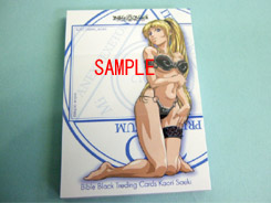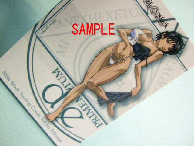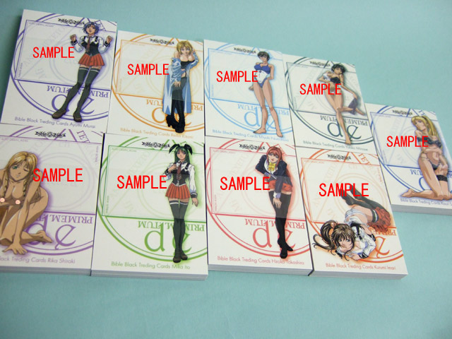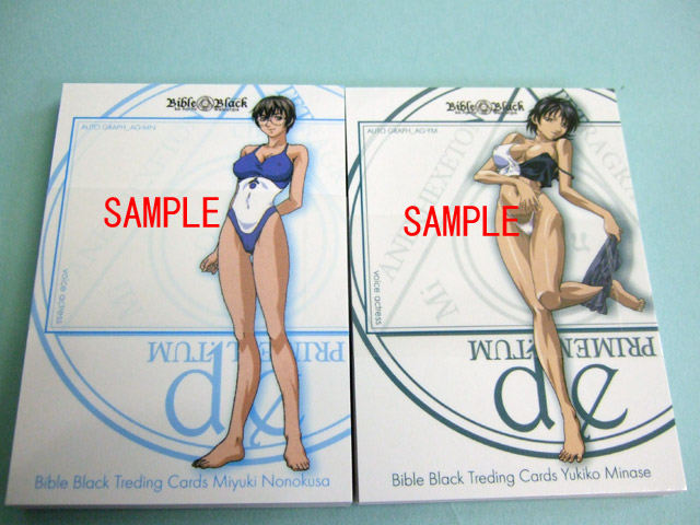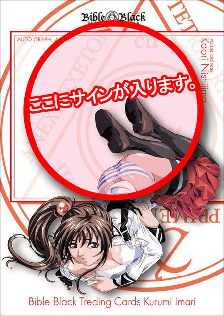 みやびや「Bible Black バイブルブラック トレーディングカード」(AA)が6月14日発売予定となっていますが、今回、パンツ一丁可能な水無瀬由紀子とパンツ見せてる高城寛子のサンプルを撮影させて頂いた際「こんなのもあるよ」と、封入予定の豪華声優陣直筆サインカードのサイン前の全絵柄を見せて頂けました!掲載もOK頂いたので公開しちゃいます!多分全世界初公開?w