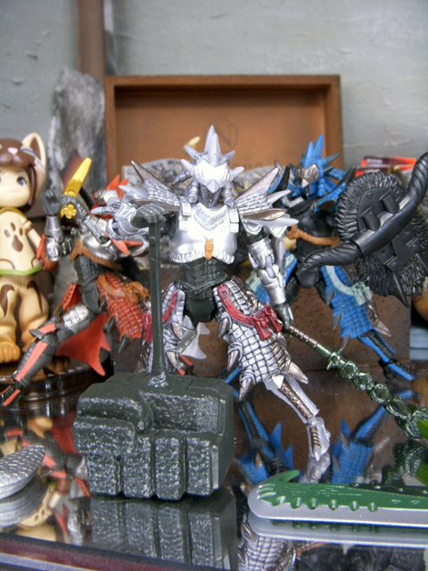 これは、最新作のPSP「モンスターハンターポータブル 2nd G」(AA)が、PSPソフト初の出荷本数200万本突破という「モンスターハンターシリーズ」のプレイヤーキャラを、いくつかの装備や武器でラインナップされたトレフィで、Amazonの商品説明によると『全身14関節・24箇所可動の「スーパーポージングフィギュア」の第4弾は、あの大人気ゲームソフト「モンスターハンター」が登場!全種に別パーツの巨大専用武器やパーツが付属され、フィギュアとセットで決めポーズの再現が可能!。』と紹介されています。