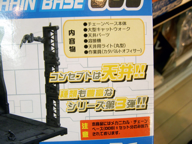 ベース本体、大型キャットウォーク、天井パーツ、溶接機、天井用ライト(丸型)、作業員(カタパルトオフィサー)が付属。