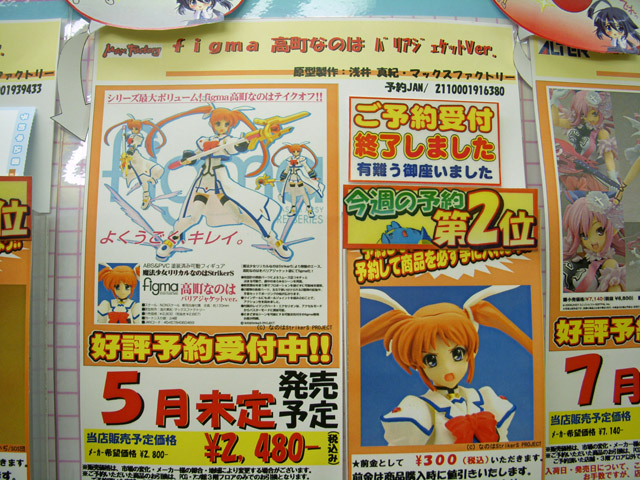 来週24日に発売予定なので、今週で予約受付が終了したマックス「Figma 魔法少女リリカルなのは StrikerS 高町なのは バリアジャケット Ver.」(AA)は、3/24~3/30付での初登場以来、実に8週連続でランクインという快挙を成し遂げていましたよ!