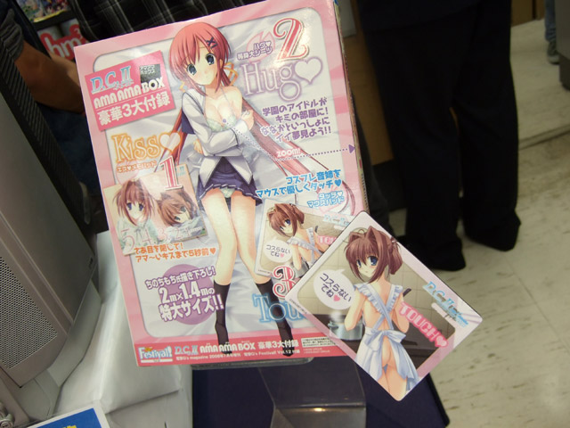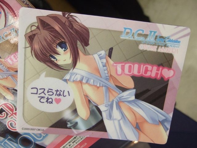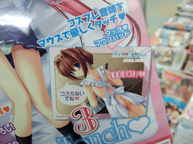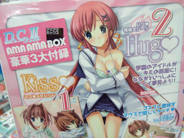 これは、以前これだけでも色々と妄想が・・・。というゲームシティのPOPをお伝えした、コンプセレクションズ同様に、あみあみの商品説明によると「まるごと1冊『D.C.II ダ・カーポII』!!中身も付録も、『D.C.II ダ・カーポII』!!」と紹介されている、「D.C. II P.S.」(AA)の特集号となっていて、めくると(はぁと)なイラストが・・・な特製メモパッド、描きおろし!等身大特製シーツや、裸エプロン姿の音姫にタッチできる!特製マウスパッド等が付録しています。