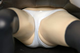 スカートはかなり下のほうにずれた感じで、一見はいてない?と思わせるくらいのビキニラインがちらりしていました!w