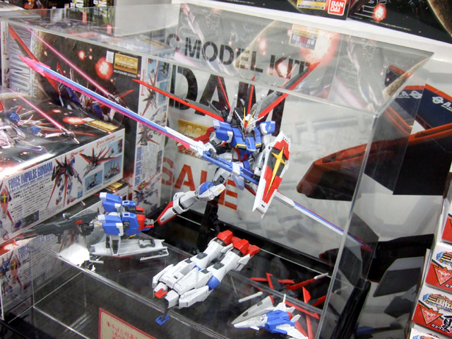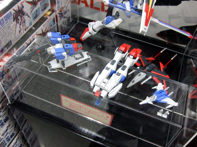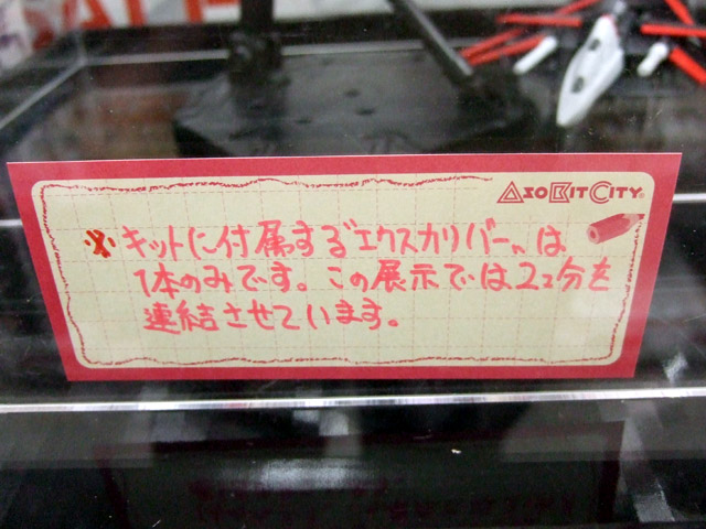キャラシティで、「キットに付属する”エクスカリバー”は1本のみです。この展示では2コ分を連結させています。」と書かれ、エクスカリバー2個連結展示されていたサンプルの展示の様子。