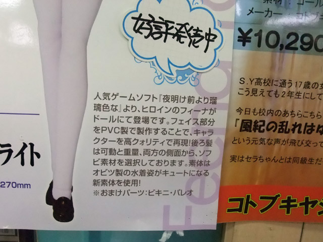 5月25日、コトブキヤ限定「夜明け前より瑠璃色な PVCヘッドドール フィーナ・ファム・アーシュライト」がコトブキヤラジオ会館にて発売されていました。