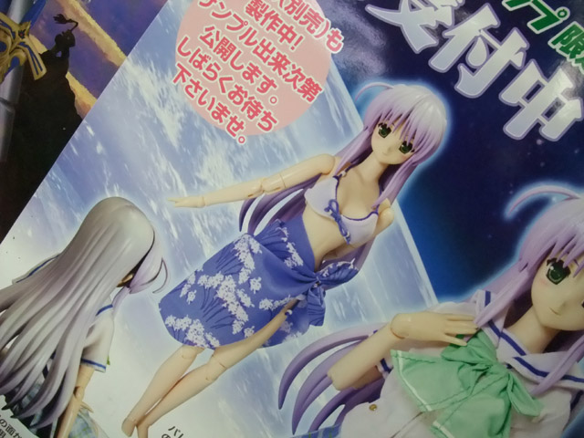 以前予約受付開始もお伝えした、タマ姉「冬服」(参考サンプルレビュー)、「夏服」に続く、コトブキヤのPVCヘッドドールシリーズ第3弾となるもので、掲示されていたポスターの商品説明によると『フェイス部分をPVC製にすることで、キャラクターを高クオリティで再現!後ろ髪は可動と重量、両方の側面から、ソフビ素材を選択しております。素体はオビツ製の水着姿がキュートになる新素体を使用!』と紹介されています。
