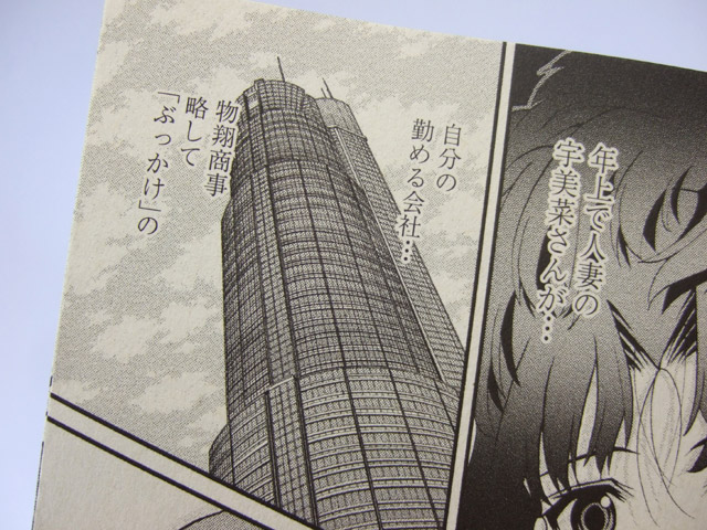 これは、エロすぎるプロモ映像も公開されている、以前、週刊少年チャンピオンで「エイケン」を連載されていた、松山せいじ氏が「ケータイ★まんが王国」(QRコード)内の「Comicマンガ王」で連載中の一般向けコミックの1巻で、裏表紙の商品説明によると『従業員一万人の超巨大企業の物翔商事、通称「ぶっかけ」下っ端部署の万年平社員・筑前勝太がツンデレ女上司&Mカップ女社長との三角関係(?)を繰り広げる魅惑と禁断のオフィスラブコメ!!あろうことか2人は・・・・・・母娘!?』と紹介されています。