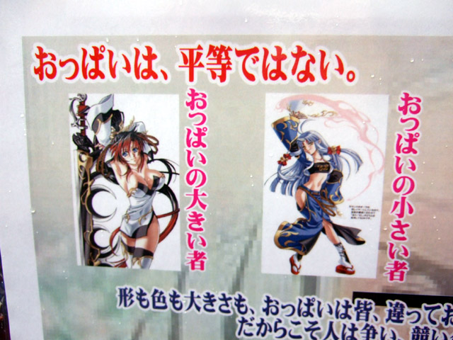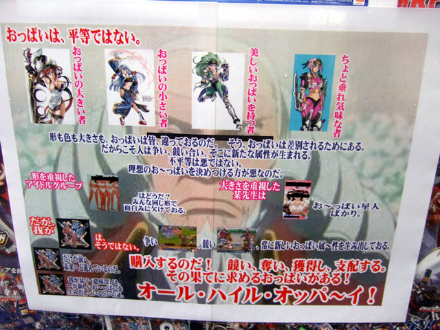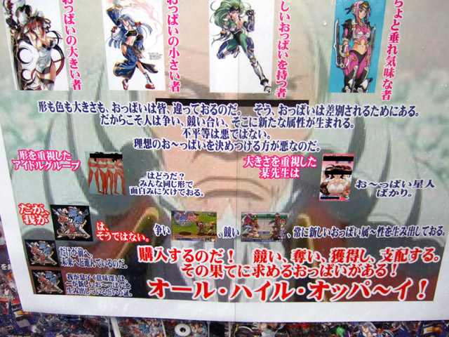 他、「おっぱいは、平等ではない。」「購入するのだ! 競い、奪い、獲得し、支配する。その果てに求めるおっぱいがある!オール・ハイル・オッパ~イ!」という、コードギアスの若本皇帝っぽい方の演説POPも掲示されていましたw