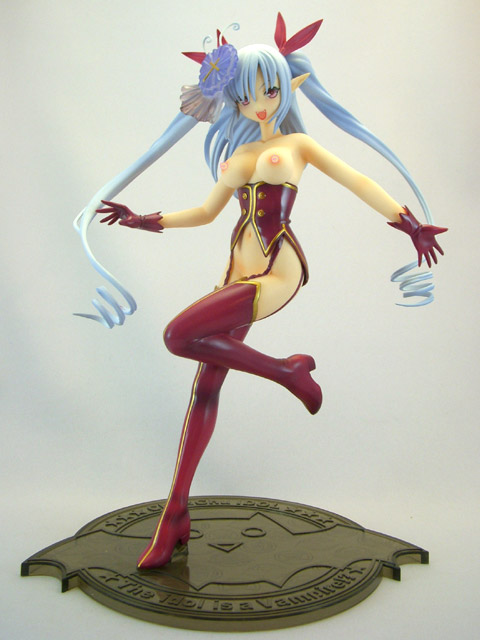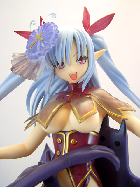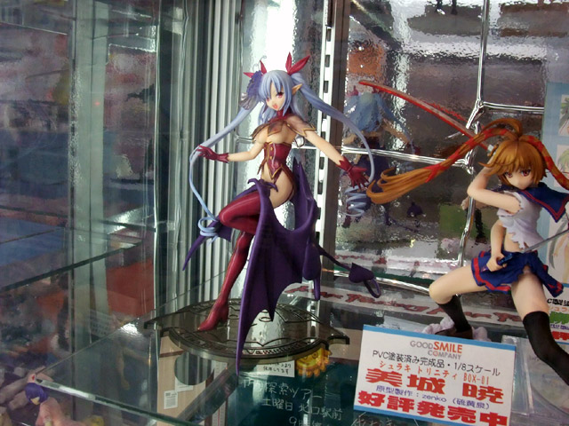 これは、以前サンプル展示をお伝えした、ユニゾンシフトのエロゲ「Chu×Chuアイドる」(AA)のキャラ「チュチュ・アストラム」をはいてないコスで立体化したもので、グッスマの商品説明によると『好評を博した『WAGA魔々かぷりちお』の「メリッサ・セラフィ」に続き、原画家織澤あきふみ氏によるイラストを見事に再現しました。設定を忠実に再現した結果、胸周りはクリアパーツでスケスケ。下半身に巻きつくコウモリは、腕が自由に動くベンダブル仕様で、巻きつけ方は思いのまま。お世話係である「ヒヨリ・ピクシー」も鋭意製作中!! 』と紹介されています。