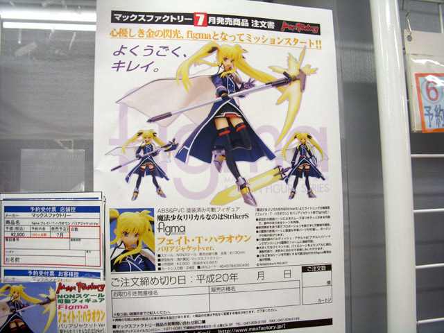 7月発売予定のマックスファクトリー「figma リリカルなのはStrikerS フェイト・T・ハラオウン バリアジャケットVer.」(AA)と「figma TVアニメ らき☆すた 泉こなた 冬服Ver.」(AA)2種の予約受付が、アキバのいくつかの店舗で開始されています。