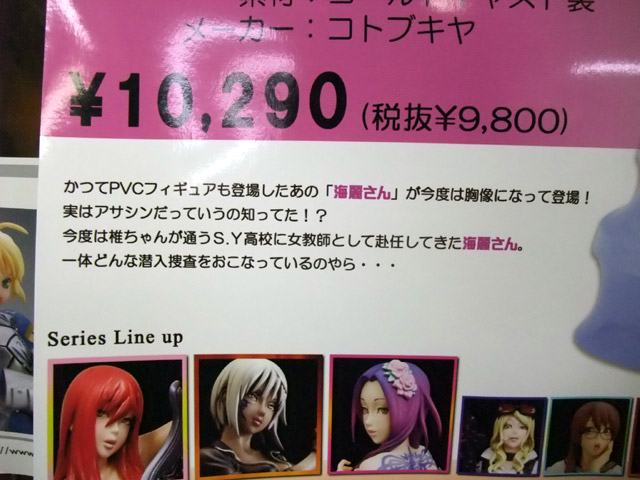 これは、2007年4月にPVC完成品で発売(サンプルレビュー)された「海麗(みれい)さん」を、山下しゅんや氏&コトブキヤコラボレーション企画「コールドキャスト製胸像シリーズ」のひとつとして立体化したものでポスターの商品説明によると「かつてPVCフィギュアも登場したあの「海麗さん」が今度は胸像になって登場!実はアサシンだっていうの知ってた!?今度は椎ちゃんが通うS.Y高校に女教師として赴任してきた海麗さん。一体どんな潜入捜査をおこなっているのやら・・・。」と紹介されています。