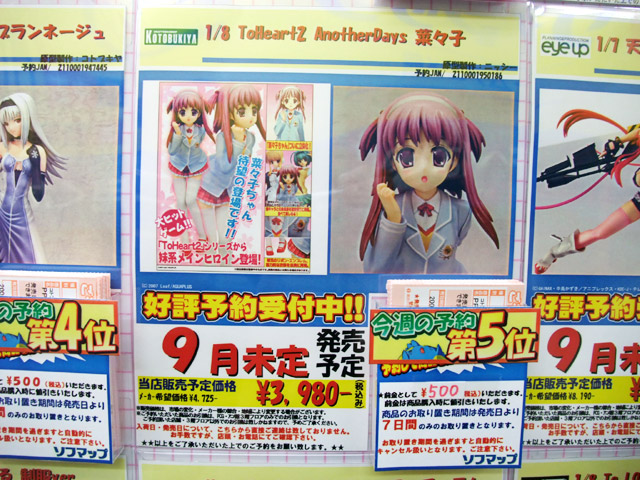 他、コトブキヤ「ToHeart2 AnotherDays 菜々子」(AA)等の、今週からの新規予約ものがいくつかランクインしていました。