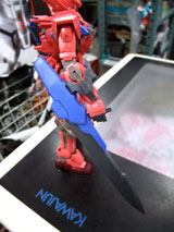 なお、見せていただいたものは試作サンプルなので、一部パーツが4月に発売された「1/100 ガンダムアストレア」(AA)と同じ青のままですが、製品版ではもちろん赤に統一されます。