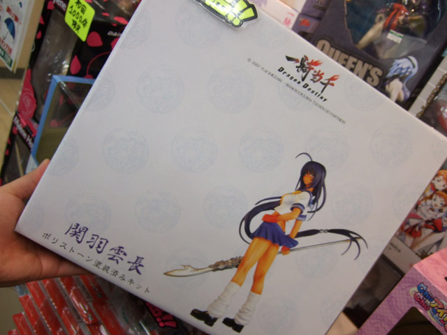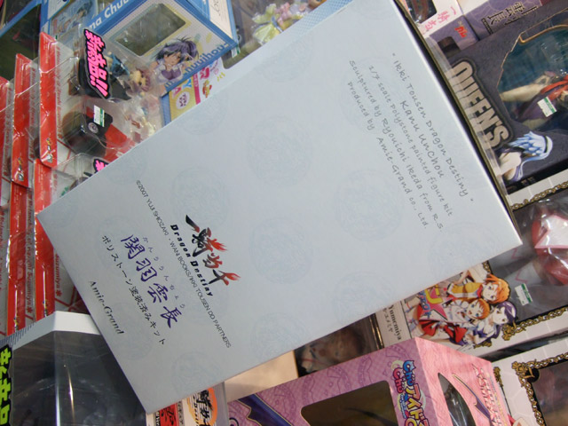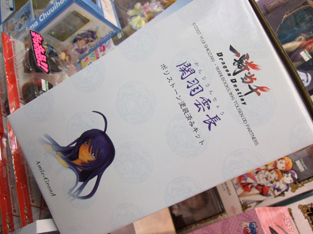 これは「一騎当千 Great Guardians」のキャラ「関羽雲長」を、POPによると新ポリストーン素材「SUHADA(透肌)」を使用して立体化したもので、アミエグランの商品説明によると『RSB 池田氏原型の1/7関羽雲長が、ポリストーン製塗装済みパーツを使った組立キットになります!接合部は抜き差しの負担が最小限になるように新たな工夫をし、簡単組み立て・差し替え自由な遊べるスタチューに致しました。 透肌素材を使用し、関羽ねえさんの日焼け肌も見事に再現できました。』と紹介されています。