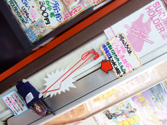 これは、サンプル展示のあったとらのPOP「いらぬ(?)豆知識」によると『iPodや薄型ケータイを入れるとひんぬーになり旧型の厚いケータイを入れるときょぬーになります。』という「スク水ホルダー」が付録していて、ゲームシティのPOPでは「ヤヴェ~。スク水が付いて来ちゃってますよ!!意味なく、2~3個買いたくなってきている、俺が居るんですが…ホントに他意は無いですよ?まぁ、ご利用は計画的に!」と書かれていましたw