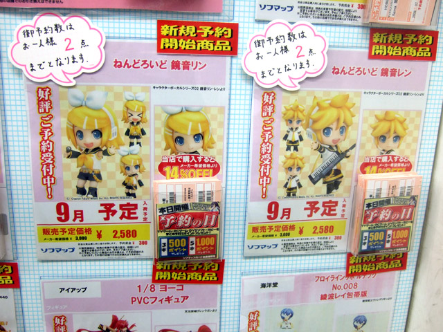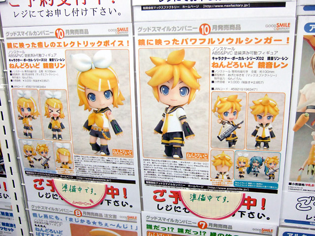 とらのあな本店、ソフマップアミューズメント館では、グッドスマイルカンパニー ねんどろいど「鏡音リン」(AM)、「鏡音レン」(RA)の予約受付が開始していました。