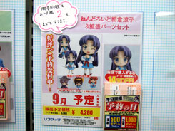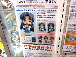 ゲームシティ5F書籍コーナーでは、以前からちょっとだけフィギュアの扱いもありましたが、そのフィギュアエリアが拡大したみたいで、グッドスマイルカンパニー「シュラキ・トリニティBOX-05 リゼフィス・ルテティーヴァ・メンテ」(AA)や、「figma 魔法少女リリカルなのは StrikerS 高町なのは バリアジャケット Ver.」(AA)、「figma 涼宮ハルヒの憂鬱 涼宮ハルヒ 制服Ver.」(AA)などが1コーナーに詰まれていました。