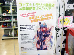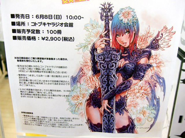 コトブキヤラジオ会館では、コトブキヤからの出版で発売される画集「山下しゅんや作品集II WILD FLOWER」(AA)の発売と、コトブキヤラジオ会館開店4周年記念イベントとして、「直筆サイン入作品集数量限定販売」を行うというPOPが掲示されていました。