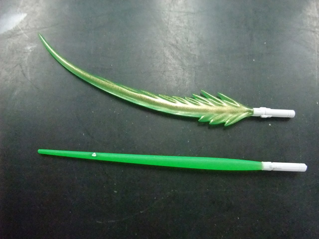 ビームサーベルのエフェクトは、従来の普通のものの他、躍動感を演出できる、切る時の曲がったものも付属しています。