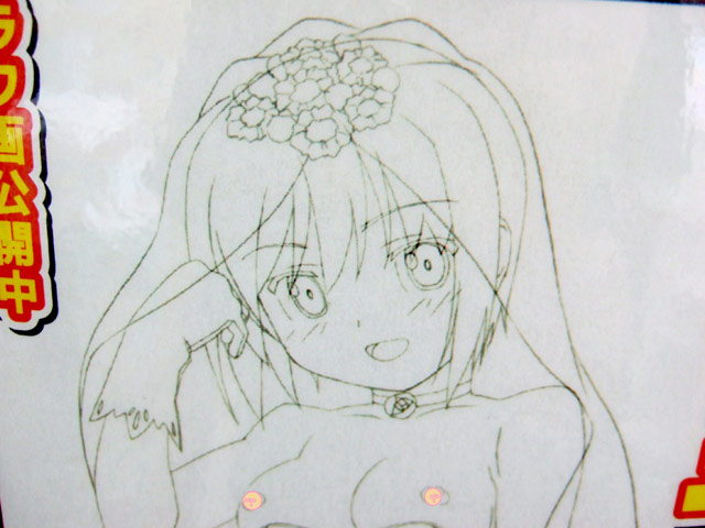 以前、ソフマップ「等身大描き下ろしベットシーツ」 無修正展示もお伝えした、6月28日発売予定のフロントウイングのエロゲ「魔界天使ジブリール3」(AA)ですが、ゲームシティにて、「リカ花嫁テレカ!?ハイテナイ!!」として、アソビット特典テレカイラストのラフが公開されてました。
