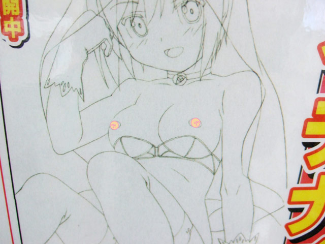 ちなみに以前、「等身大描き下ろしベットシーツ」 無修正展示とお伝えしたソフマップアミューズメント館では、もうひとつの特典の「描き下ろしおっぱい枕カバー」のサンプルイラストが公開されていました。