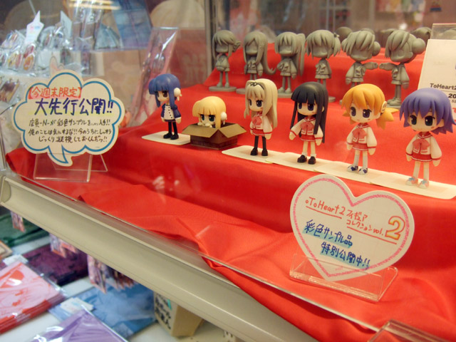トイズ・プランニング「ToHeart2 フィギュアコレクション Vol.1」のPOPと無彩色サンプルの展示