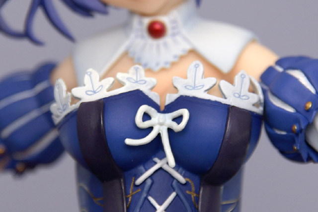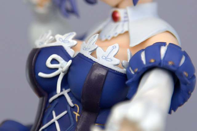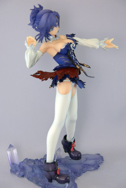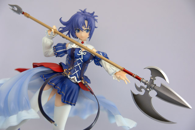 イメージイラストを見事に立体へ昇華した精密彩色済みの完成品フィギュアです。天涙の衣「ルネサンス衣装」を纏った「リゼフィス・ルテティーヴァ・メンテ」はシリーズラストを飾るにふさわしい、最大のボリューム。優雅な装いの中で、特殊能力を秘めた神薙の刃『槍斧ハルベルト「パクトウィズ」』を構え微笑む姿は、どこか神秘的。「天涙の衣・ダメージVer.」では広がるドレスが剥ぎ取られた刺激的な姿に。