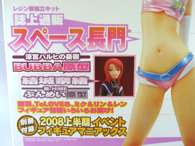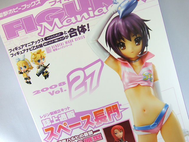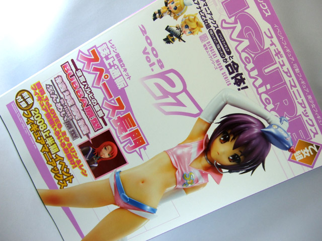 ムック本「フィギュアマニアックス乙女組 27」(AA)が6月9日には発売していたみたいで、10日に気がつきました。今月号は、FM22で誌上通販された「ハルヒバニー」(作例サンプル)の原型も手がけられたBUBBA氏が原型を制作された「スペース長門」(作例サンプル)のガレキ誌上通販が出来る号となっています。「2008年上半期イベントフィギュアマニアックス」も付属。
