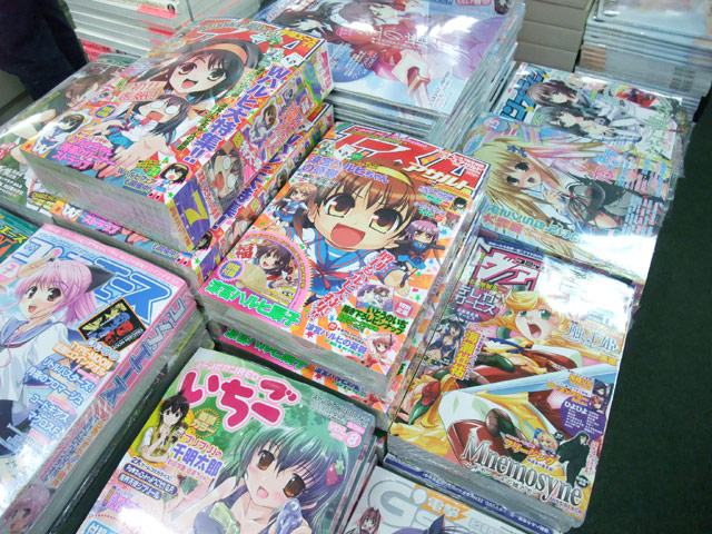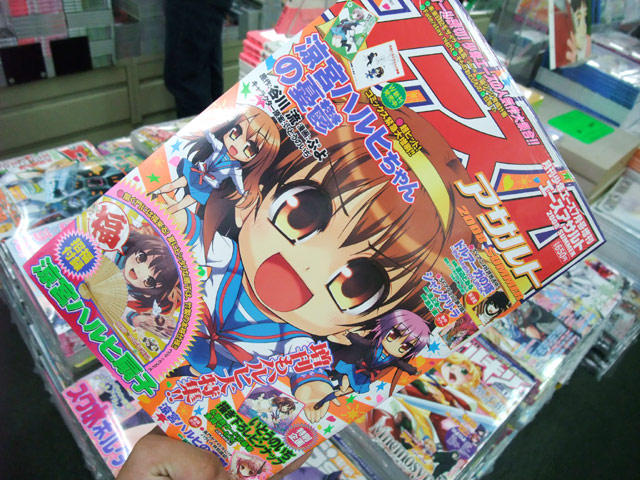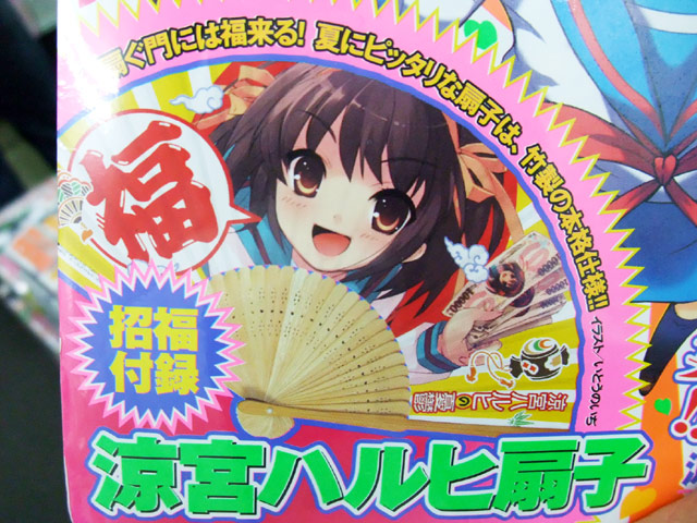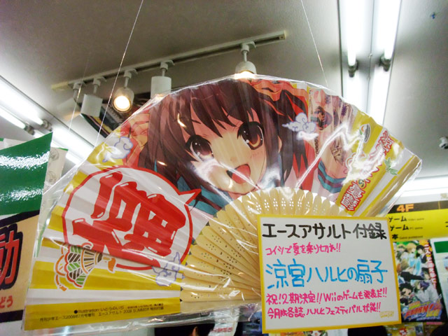 他、11日に入荷確認できたのは、「祝!2期決定!!Wiiのゲーム(AA)も発売だ!!今月は各誌ハルヒフェスティバル状態!!」として、「涼宮ハルヒ扇子」のサンプルを展示していたゲーマーズ本店、ゲームシティ、メロンブックス、とらのあな1号店などでした。