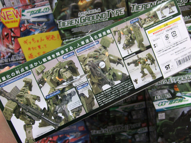 バンダイ「1/100 ティエレン地上型」(AA)のパッケ表と側面の解説など。