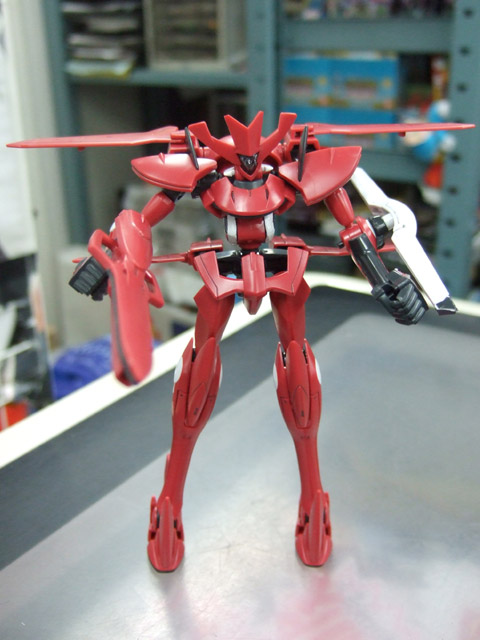AEU MS 初の立体化!この機体の特徴でもあるフェイス部にクリアパーツを使用。ABS関節を使用することで、絶妙なプロポーションを維持したまま、飛行形態への変形が可能。ソニックブレイドはヒジにマウント可能。ブレイドライフルはスライドして刀身を再現。ライフルは機体前方で変形時に腹部に格納を再現。ライフル、シールドは左右の手、腕に取り付け可。ブレイドライフル(両腕取り付け可能)×1、ディフェンスロッド(両腕取り付け可能)×1、ビームサーベル2種(柄のみ、ビーム付き)、ミサイルポッド×1