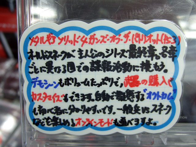 ネットでは12日から予約開始されたマックスファクトリー「figma Fate/stay night 遠坂凛 私服Ver.」(AA)ですが、アキバでもとらのあな本店、ソフマップPCゲーム・アニメ館にて予約受付が開始していました。他、PS3「メタルギア ソリッド 4 ガンズ・オブ・ザ・パトリオット スペシャルエディション」(AA)、DVD「メタルギア ソリッド 2 バンドデシネ」(AA)発売等をまとめて。