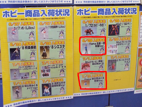 マックスファクトリー「figma 涼宮ハルヒの憂鬱 朝比奈みくる」(AA)の発売が7月に延期になったみたいで、ソフマップアミューズメント館のPOPによると、新しい入荷日予定、7月12日頃みたいです。