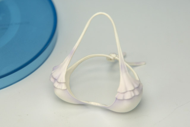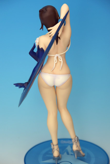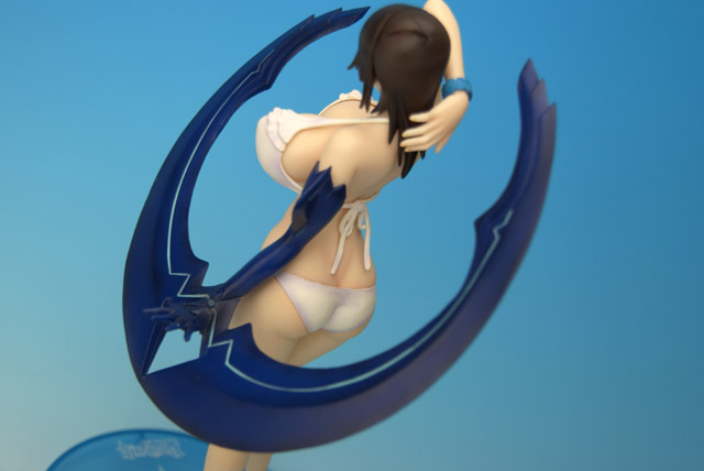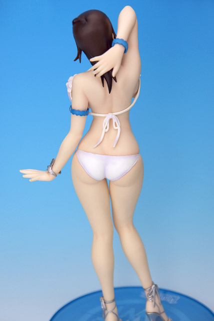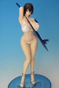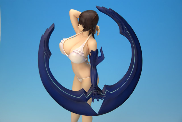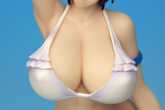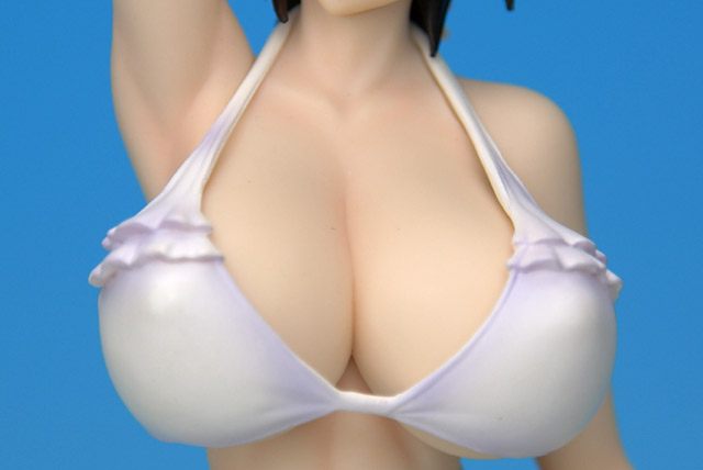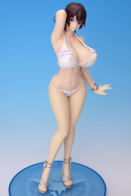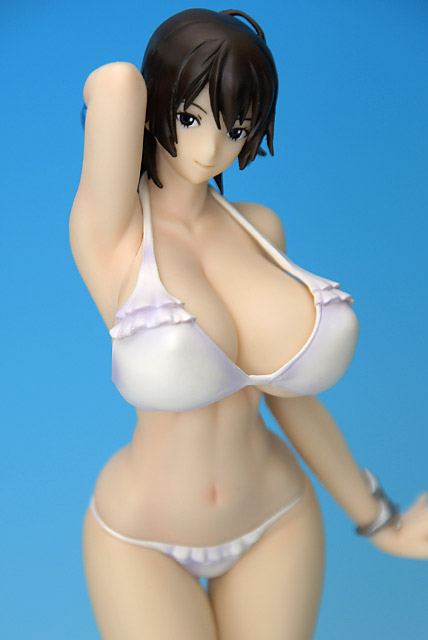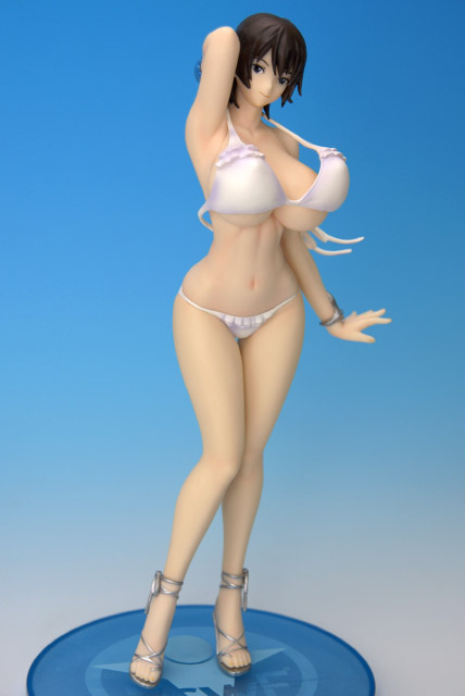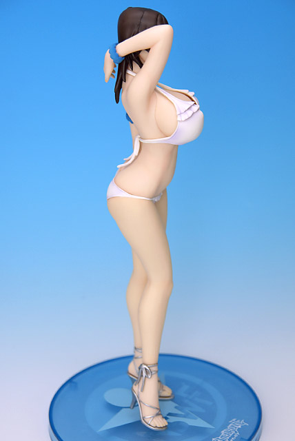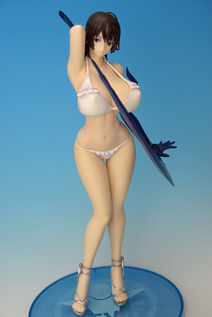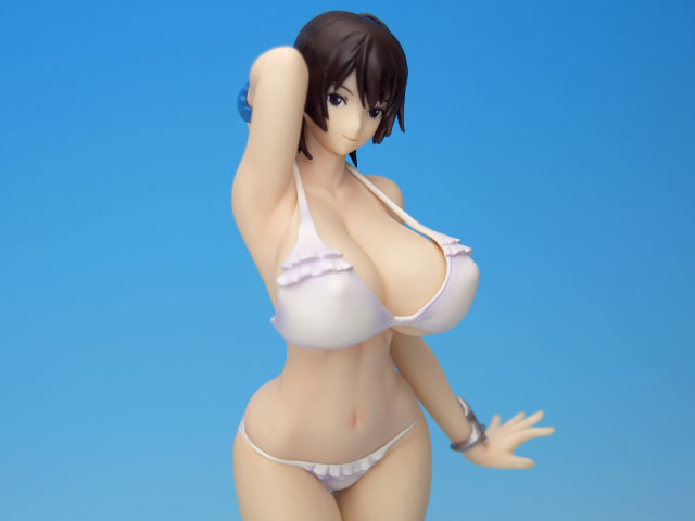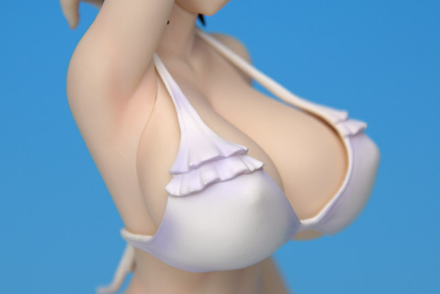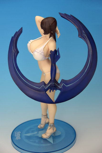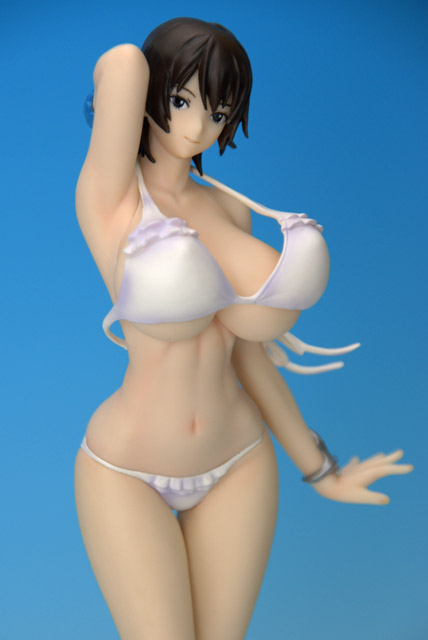 これは「ウィッチブレイド」のキャラ「都築栞」を、白ビキニ姿で立体化したもので、オーキッドシードの商品説明によると『ビバ! メーター超え!!ウィッチブレイド・雅音に続き、スーパーフェロモン系キャラ「都築栞」が新登場。主人公である雅音を越える豊満バストが立体化によってさらに大爆発!!水着からこぼれ落ちそうなボリュームはまさにダイナマイト!!左腕はクローンブレイドと差替え可能!!』と紹介されています。