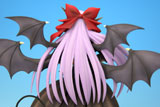 小柄な体型ながら、背中の羽やゴスロリ系コスのひらひらしたスカートなどで、ボリューム感はかなりあります。