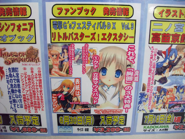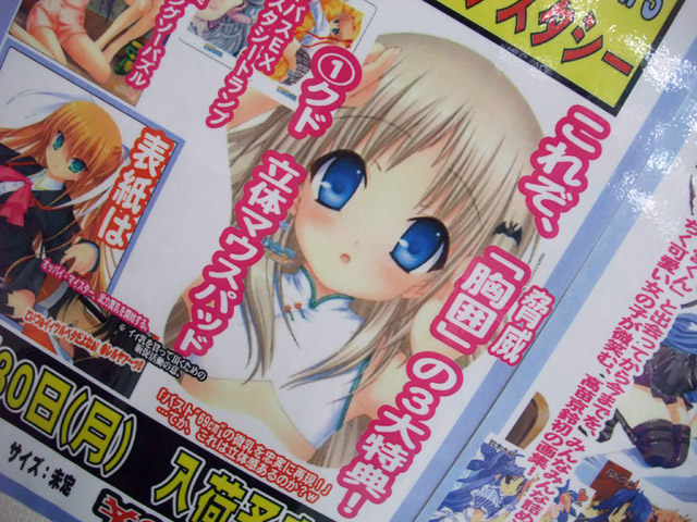 ゲームシティにて、6月30日発売予定の雑誌「電撃G’s Festival DX(ジーズフェスティバル・デラックス) Vol.3」の告知POPが掲示されていました。告知によると『「バスト”69cm”を忠実に再現!」・・・てか、これは立体感あるのか?w』という「クド 立体マウスパッド」等の『これぞ、「胸囲(脅威)」の3大特典!』が付属するみたいですwオッパイ・マイスターの武力買乳もありましたw