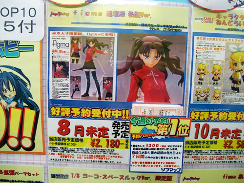 ソフマップ秋葉原PCゲーム・アニメ館の週間フィギュア予約ランキング6/9~6/15付分をお伝えします。今週の1位は、今週から予約が開始された「figma 遠坂凛」(AA)でした。ねんどろいど「鏡音リン」(AA)「鏡音レン」(AA)は仲良く2位と3位に。他、今週から予約開始の、太ももが生足な、ウェーブ「ヨーコ・スペースルックVer. 宮沢模型流通限定」(AA)が5位にランクイン。