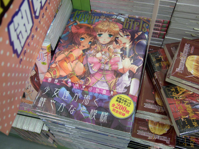 6月17日、画集「COVER GIRLS コミックメガストアカバーイラストレーションズ」(AA)が発売日を迎えました。これは、商品説明によると「コミックメガストア創刊号(1999年)~100号(2008年)までの全イラストを、雑誌掲載時とは違うノートリミング、ビッグサイズですべて収録。」というもので、表紙イラストの隣には、その表紙の女の子が主に合体しているイラストも掲載していますw