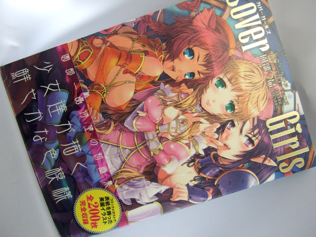 内容は、まさに表紙イラストの画集で、表紙イラストに用いられたイラストの隣には、その表紙の女の子が主に合体しているイラストも掲載していますw