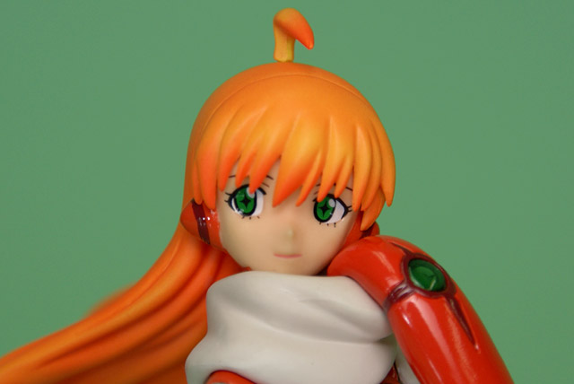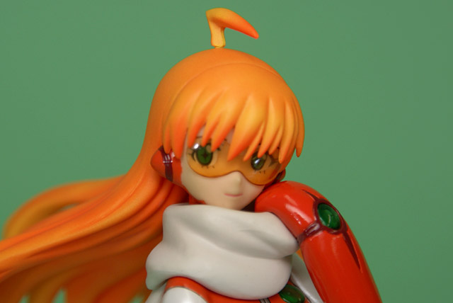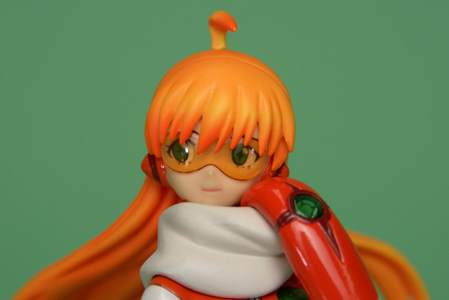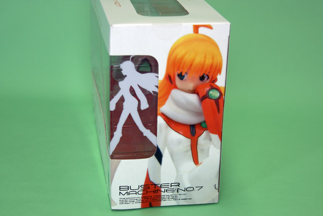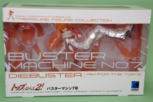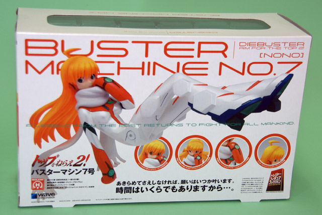 これは、以前発売された「タカヤノリコ」(AA)(参考レビュー)に続く、「トップをねらえ2!」の「バスターマシン7号」を立体化した、ウェーブの「トップをねらえ!」シリーズのひとつで、ウェーブの商品説明によると『イナズマキィ~ック!「トップをねらえ2!」よりヒロインのノノこと「バスターマシン7号」が桜坂美紀氏の手によりフィギュア化。出来栄えはかつて1/8スケール「メイド服Ver.ノノ」のキット原型を手がけた際も傑作と評された桜坂氏が、その経験をいかし、練りに練って手がけただけあって、見るもの全てを魅了してしまうほどです。特徴的な胸と両手の甲のフィジカルリアクターは透明パーツにて再現。またフェイス部はパーツの付替えでゴーグルなしとゴーグル付の両方を再現可能。』と紹介されています。