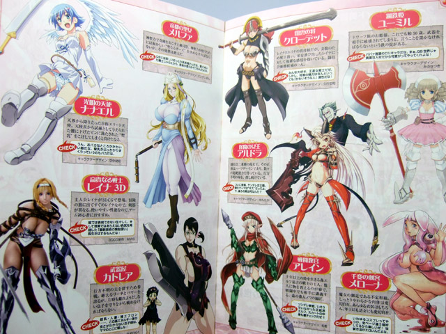 他、「クイーンズブレイド丸わかりBOOK(2008年6月版)」には、プレイの説明、イメージイラストや、これまで発売された全種のキャラクター紹介などが掲載されていました。