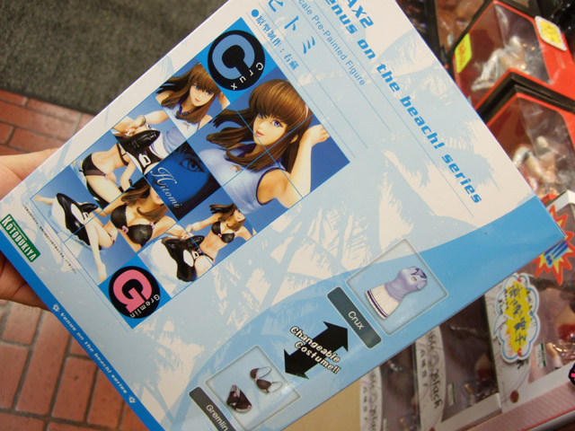 これは、以前圧倒的な乳の存在感だったサンプル展示をお伝えした、第1弾「あやね」(AA)(参考サンプルレビュー)、第2弾「レイファン」(AA)(サンプル展示)。第3弾「ティナ」(WF2008冬での展示の様子)に続く、通称「エロバレー」ともいわれる「DEAD OR ALIVE Xtreme2」のキャラを立体化する、コトブキヤ「DOAX2ヴィーナスオンザビーチ!」の第4弾として「ヒトミ」を立体化したものです。
