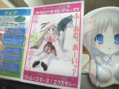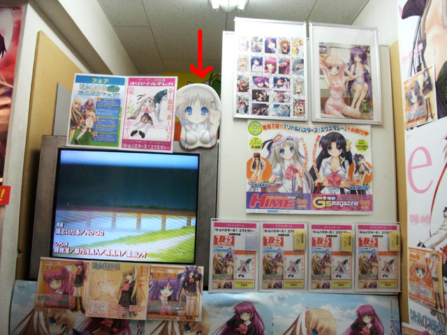 アキバOSさんも書かれているように、以前「・・・てか、これは立体感あるのか?w」とされていた、雑誌「電撃G’s Festival DELUXE Vol.3」(AM)に付属する「クド おっぱいマウスパッド」のサンプル展示が、ゲーマーズ4Fエスカレーター付近のデモモニター上で開始しています。