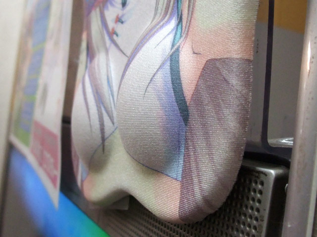 アキバOSさんも書かれているように、以前「・・・てか、これは立体感あるのか?w」とされていた、雑誌「電撃G’s Festival DELUXE Vol.3」(AM)に付属する「クド おっぱいマウスパッド」のサンプル展示が、ゲーマーズ4Fエスカレーター付近のデモモニター上で開始しています。「バスト69cm」を忠実に再現したらしく、流石にペッタンではなかったものの、非常に控えめなふくらみw