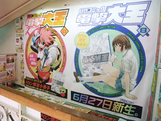 掲示されていた雑誌「電撃大王 2008年 08月号」(AA)の告知ポスター色々。